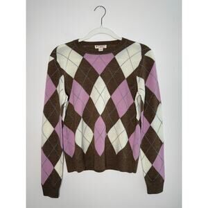 NWOT VTG Y2K Brooks Brothers Merino Wool Preppy Academia Argyle Pink Sweater S