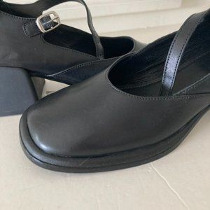 NWOT Vagabond Free People Ansie Mary Jane Black Leather Heels Sz 36