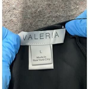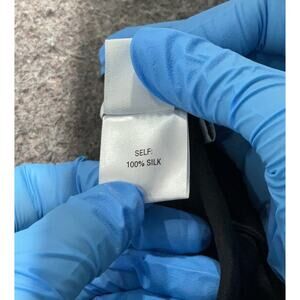 This is a Valeria black silk blouse for women, featuring a stylish off the shoulder neckline and long sleeves. It is a size large and is designed in a regular fit. Perfect for adding a touch of elegance to any outfit.