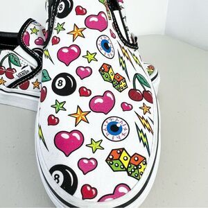NWOT Vans Classic Slip On 8 Ball Eye Heart Cherry Dice Stars Unisex W/10 M/8.5