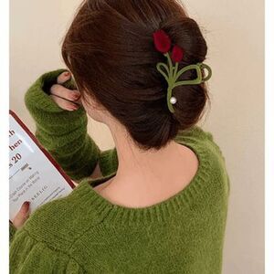 NWOT Velvet Tulip & Pearl Hair Claws Clip - 4" long