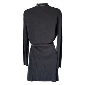 NWOT Venini Belted Long Sleeve Long Cardigan Womens SZ Medium Black Button Down