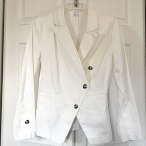 Venus White Twill Button-Front Hourglass Blazer. Size
