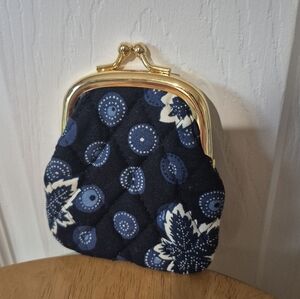 New without tags, Vera Bradley dark blue fabric coin purse with gold toned hardware