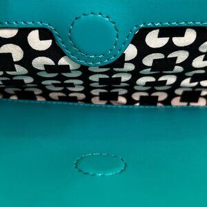 TAGS: Vera Bradley, leather, shoulder bag, mini, purse, bag, turquoise, teal