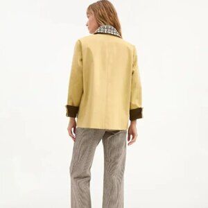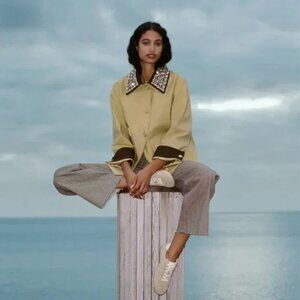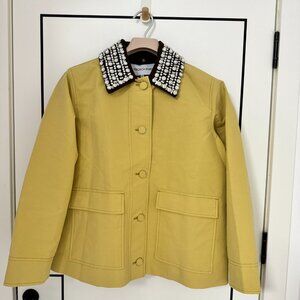 Expertly tailored from 100% cotton, the yellow lightweight Arlen is the perfect transitional coat, with an added touch of glamour. It features a relaxed, boxy fit with oversized flap pockets and contrast-color cuffs. The highlight? A detachable collar covered in dazzling rhinestones—perfect for elevating the everyday.