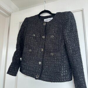 NWOT Veronica Beard Ferazia Metallic Tweed Jacket Black Sz 2 Boxy Fit