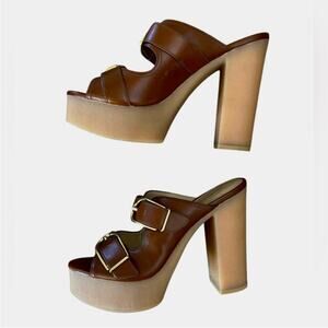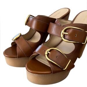 NWOT Veronica Beard Garrick Dual Buckle Platform Hazelwood Brown Sandals – Sz 10