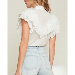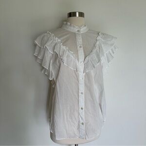 NWOT Veronica Beard Jaliyah Ruffle Top White Cotton Sz XL