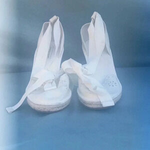 NWOT Veronica Beard Women 11 Soleil Sandal Espadrille White Eyelet Wedge *defect