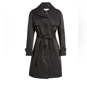 NWOT Via Spiga Black Water Repellent Cotton Blend Trench Coat - Sz XXL
