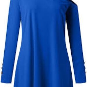 This striking mini sheath dress in vibrant royal blue features a unique one shoulder design with an asymmetrical neckline and a stylish cut-out detail. The long sleeves add an elegant touch, making it perfect for a night out or cocktail event. Embellished accents enhance its eye-catching appeal, ensuring you stand out in any setting. NWOT because no tags were attached however it includes original packaging and never worn. Measures 21 pit to pit and 35 in length. Fabric has stretch.