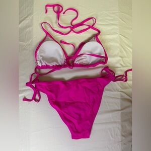 NWOT Vibrant Pink Halter Bikini with Adjustable Side-Tie Bottoms