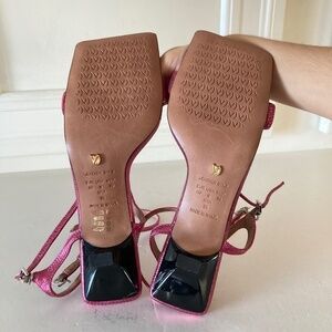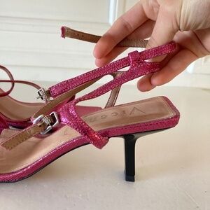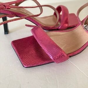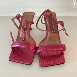 NWOT Vicenza Anthropologie Pink Metallic Strap Square Toe Heels