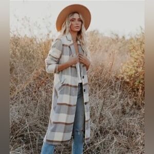 NWOT Vici Dolls Plaid Checkered Long Sleeve Fall Coat - Size Large