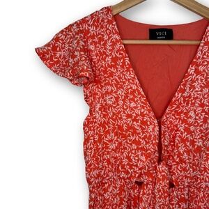 Adorable high-low dress with floral design. Features a tie waist and short sleeves. Size medium, new without tags, never worn.