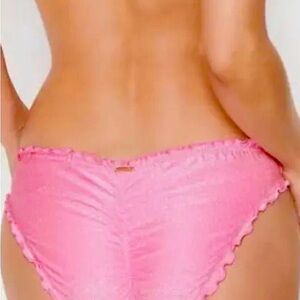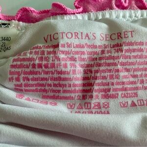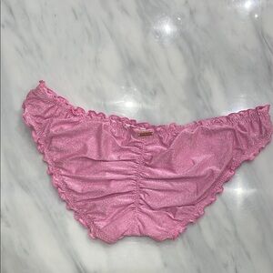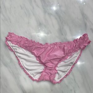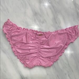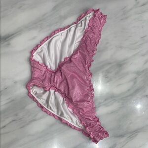 These Victoria's Secret bikini bottoms feature a chic two-tone design in pink, offering a stylish and modern look. The ruched elastic sides add a touch of elegance and ensure a comfortable fit. Made from a smooth, high-quality material, these bottoms provide moderate coverage with a flattering low-rise cut.