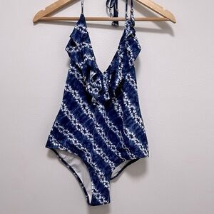 NWOT Victoria Secret Flounce Ruffle Deep Plunge Cheeky Tie Dye One Piece Suit M