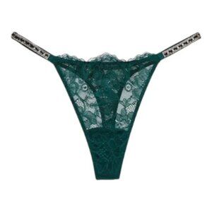NWOT Victoria Secret Green Ivy Lace Thong w/Gold Accents Size: XL
