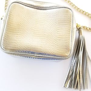 Gorgeous new never used Victoria Secret silver bag with gold chain strap. Perfect for parties!