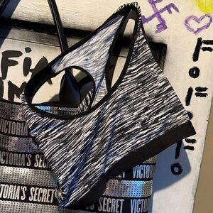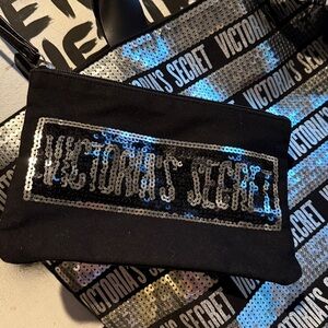 Chic Victoria's Secret bag set in black and silver. Features a coordinating pouch and sports bra.