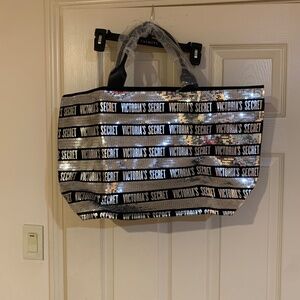 NWOT Victoria’s Secret Black/Silver Canvas/Sequin Tote Bag