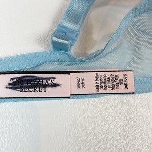 NWOT Victoria's Secret Bra 34D Push-Up Blue White Lace