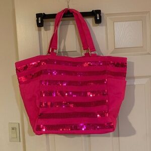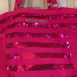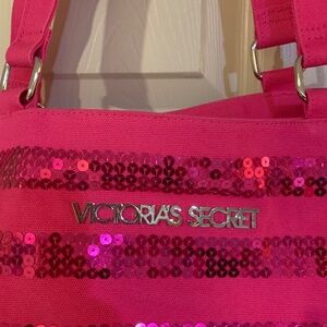 NWOT Victoria’s Secret Pink Canvas Sequin Tote Bag