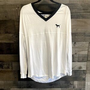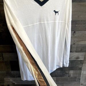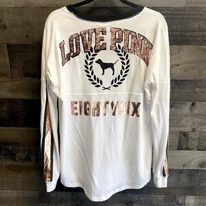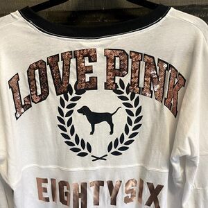 NWOT Victoria's Secret Pink White Sequin Bling Varsity Crew Pullover Tunic S