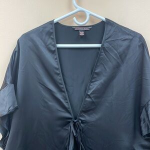 NWOT Victoria's Secret Satin Kimono Black Graphic Robe Loungewear Comfy OS
