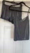 Stylish gray cami and shorts set with a shimmering finish. Perfect for lounging or a casual outing.