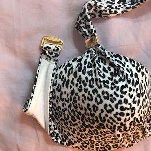Leopard VS bikini top! Black and white print, gold hardware, hidden underwire, light padding, adjustable neck tie and back hook. VS Swim. Super soft and comfy, just not my size. I bought it and forgot about it, and it's way too late to return. Pick up this cute bikini top at a heck of a steal price! NEVER BEEN WORN.