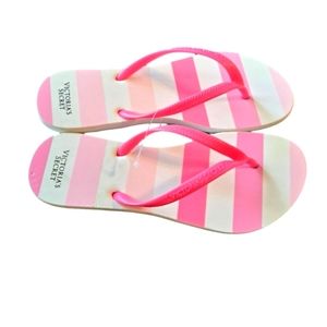 NWOT Victoria's Secret Women Striped Hot Pink Summer Beach Flip Flops Small 5/6