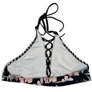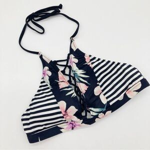 NWOT Victoria’s Secret Floral and Striped Lace Up High Neck Halter Bikini Top