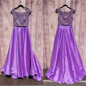 NWOT Vienna Prom Purple Rhinestone Bodice & Taffeta A-Line Skirt 2 PC Gown Sz 10