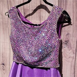 NWOT Vienna Prom Purple Rhinestone Bodice & Taffeta A-Line Skirt 2 PC Gown