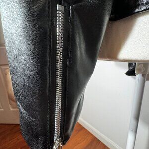 Beautiful and soft fully lined black faux leather jacket with silver zippers and snaps
