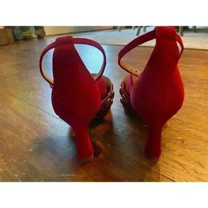 NWOT Vince Camuto Red Ankle Strap Leather Studded Krellen Stiletto,sz 5.5