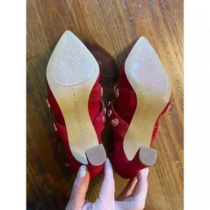 Vince Camuto Red Ankle Strap Leather Studded Krellen Pointed Toe Stiletto