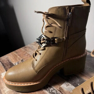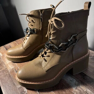 NWOT Vince Camuto Tan Platform Heeled Boots Chain Detail Women Size 8