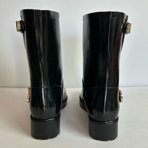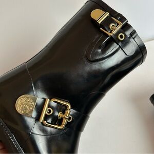 NWOT Vince Camuto Women’s 8m Black Rubber Boots Mid Calf Gold Hardware