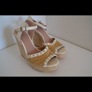 Leather upper-white. Silver tone studs details. Espradille wedge.