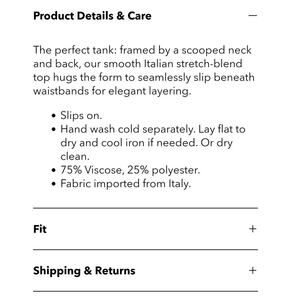 Sleek, timeless, and effortlessly chic โ this Vince black ribbed tank is a wardrobe staple you'll reach for again and again. Crafted from a luxe Italian stretch-blend fabric, it features a flattering scoop neckline and smooth, body-hugging fit for a clean silhouette under blazers, cardigans, or worn solo. Style meets versatility โ perfect for layering or wearing on its own. ๐ฅ
