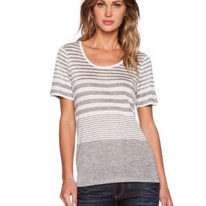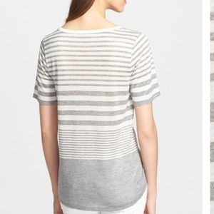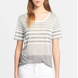 Wide and skinny heathered stripes energize a relaxed scoop-neck tee ideal for everyday wear.
