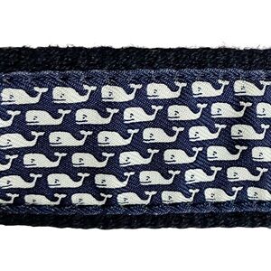 NEW without Tag! VINEYARD VINES Men’s Whale Canvas Club Belt~SIZE 30 (Measures 35 1/4” End to End)~Navy~100% Italian Bridle Leather~100% Imported Silk on Cotton Canvas Webbing~Brass Buckle. . .RETAIL $68