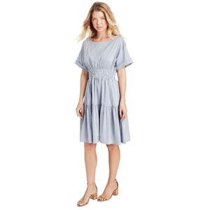 NWOT Vineyard Vines Smocked Waist Fit&Flare Dress Size M Blue Striped Lined Knee