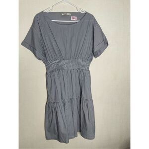 This Vineyard Vines Smocked Waist Fit & Flare Dress Size Medium Blue Striped Lined