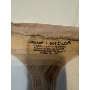 A versatile and comfortable Barely There thong in a neutral beige tone, perfect for wearing under any outfit. Crafted from a soft cotton blend with a touch of stretch, this thong offers a smooth, flattering fit with minimal back coverage.