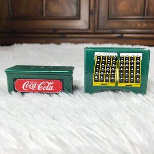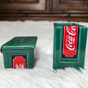 NWOT Vintage Coca-Cola Emerald Green Ceramic Salt & Pepper Shakers