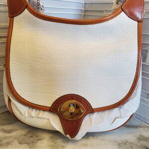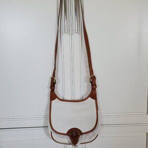 Dooney & Bourke RARE WHITE AND ORIGINAL BRITISH TAN TRIM Vintage AWL All Weather Leather Calvary Saddle Bag